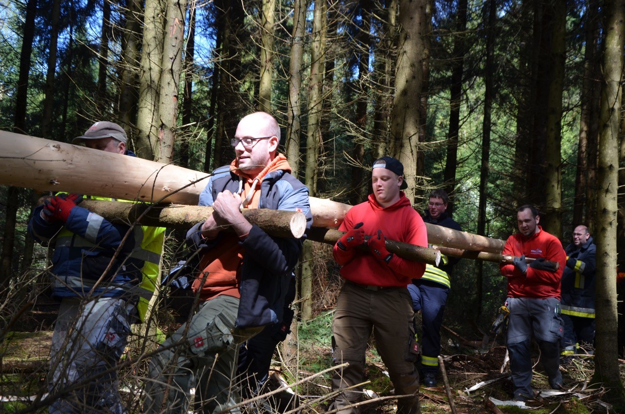 Mit vereinten Kräften holten Mitglieder des Groß-Zimmerner Feuerwehrvereins sowie der Einsatzabteilung am vergangenen Samstag den traditionellen Maibaum im Zimmerner Wald.