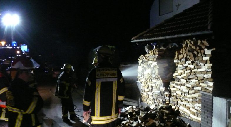 In der gleichen Nacht, gegen 01:00 Uhr, wurde in Klein-Zimmern, in der Blumenstraße, ein Holzunterstand, der direkt an den Fußweg angrenzt, durch einen bislang unbekannten Täter angezündet. Zufällig vorbei kommende Passanten konnten den Brand in der Entstehungsphase mit einer Gießkanne ablöschen. An beiden Brandorten waren die Freiwilligen Feuerwehren aus Groß-Zimmern und Klein-Zimmern im Einsatz.