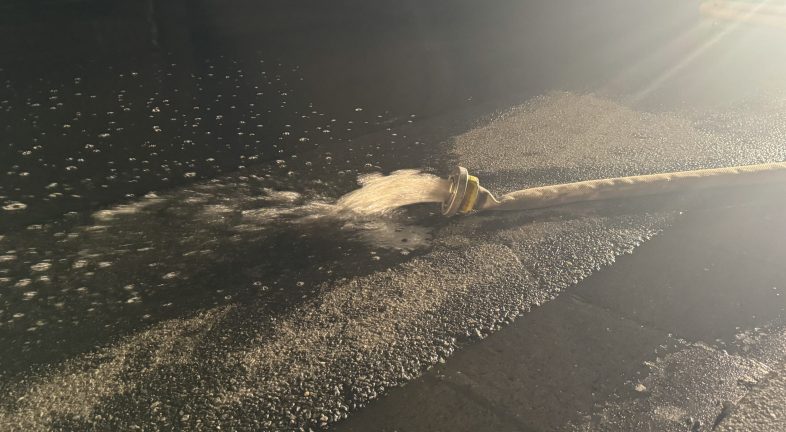 Die Einsatzkräfte verschafften sich zunächst Zutritt zu den Ladenräumlichkeiten und konnte im Anschluss das Wasser mit Hilfe eines Wassersaugers aufnehmen.