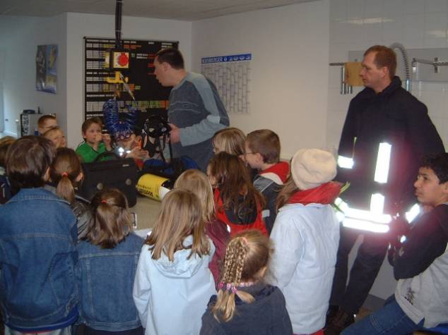 Am heutigen Donnerstag besuchten Schüler der 1B Igelgruppe der Schule am Angelgarten im Rahmen einer Klassenfeier unseren Feuerwehrstützpunkt.