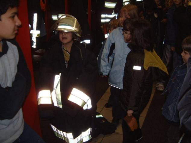 Er erläuterte darüber hinaus kurz wie eine Freiwillige Feuerwehr aufgebaut ist: So gibt es einen Feuerwehrverein der sich u.a. mit der Unterstützung und Förderung der Einsatzabteilung beschäftigt, die Alters- und Ehrenabteilung und natürlich die Einsatzabteilung die für den aktiven Brandschutz in Groß-Zimmern sorgt. Auch die Hirachie der Feuerwehr wurden den Kleinen näher gebracht. So steht an der Spitze einer Freiwilligen Feuerwehr der Bürgermeister, gefolgt von Gemeindebrandinspektor (GBI) und den Wehrführern.