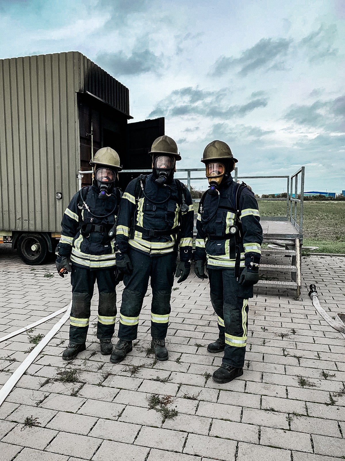 Am Samstag, den 19.10.2019, waren 12 Atemtschutzgeräteträgerinnen und -geräteträger der Feuerwehren Groß- und Klein-Zimmern zu Besuch bei der Werkfeuerwehr Merck in Gernsheim. Dort hatten sie die Möglichkeit an einer Realbrandausbildung teilzunehmen. Nach einer kurzen theoretischen Einweisung und einer kleinen Frühstückspause ging es frisch gestärkt nach draußen. Dort wurde erst einmal alles für den praktischen Teil vorbereitet, Tische aufgebaut und die Klamotten aus dem Fahrzeug geholt. Dann ging es auch schon los. Im ersten Durchgang konnte die Entwicklung vom Entstehungsbrand zum Vollbrand beobachtet werden. Dabei konnten wir eine unserer beiden neuen kleinen Wärmebildkameras Seek Reveal firePRO unter realen Bedingungen testen. Der zweite Durchgang beschäftigte sich mit dem Beobachten der verschiedenen Raucharten und -schichten, sowie dem Erkennen einer bevorstehenden Rauchgasdurchzündung. Nach einer kurzen Pause zum Abkühlen wurde das Handling mit dem Hohlstrahlrohr geübt und einzelne Handgriffe nochmal aufgefrischt. Danach ging es für unserer Teilnehmer Truppweise wieder in den Container. In diesem Durchgang lag das Augenmerk auf das Abwehren und Bekämpfen von Rauchgasdurchzündungen und das Entrauchen eines Raumes mittels hydraulischer Ventilation. Während dem Mittagessen wurde sich wieder gestärkt und nachdem alles in den Fahrzeugen verstaut war ging es auch schon wieder zurück. Ein großes Dankeschön geht an dieser Stelle an Thomas Heine und Laura Grimm für die großartige Versorgung, sowie an die zwei Kameraden der Werkfeuerwehr Merck für den lehrreichen Tag.