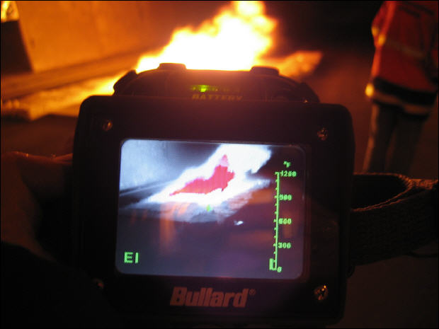 Der Name ist Programm: Die neue Kamera zeigt die mit dem bloßen Auge nicht erkennbare Temperaturunterschiede auf dem farbigen Display an, und hilft so, Glutnester aufzuspüren oder Personen in verrauchten Räumen besser zu erkennen. Dank der eingebauten Funk-Übertragungseinheit ist auch die Einsatzleitung außerhalb des eigentlichen Geschehens immer im Bilde. Nach der Präsentation diverser Hersteller fiel die Wahl der Groß-Zimmerner Feuerwehr auf ein kompaktes Gerät der Firma Bullard. Die Kamera ist handlich, robust und hitzebeständig. Ausgestattet mit einem Temperatursensor gibt sie zudem genaue Auskunft über die Hitze im Innenangriff. Den finanziellen Grundstock hatte im Jahr 2005 eine Spende des Groß-Zimmerner Kerbvereins gelegt. Zusammen mit den Einnahmen aus der Spendenaktion am Kürbismarkt sowie dem Zuschuss der Gemeinde wird mit der neuen Kamera ein weiterer Lebensretter für die Groß-Zimmerner Bürger angeschafft. Besucher haben im Rahmen des Maifestes am 1.Mai die Gelegenheit das Gerät zu bewundern. Technische Daten Wärmebildkamera*